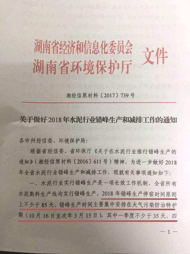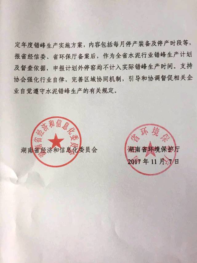 據(jù)了解以上文件是在11月10日湖南省全省水泥行業(yè)錯(cuò)峰生產(chǎn)和減排工作會(huì)議后發(fā)布的正式通知。