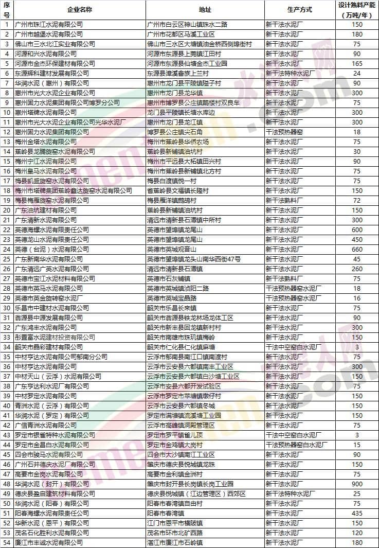 附:廣東省水泥行業(yè)產(chǎn)能現(xiàn)狀清單