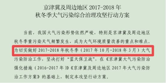 日前,環(huán)保部發(fā)布《京津冀及周邊地區(qū)2017-2018 年秋冬季大氣污染綜合治理攻堅行動方案》