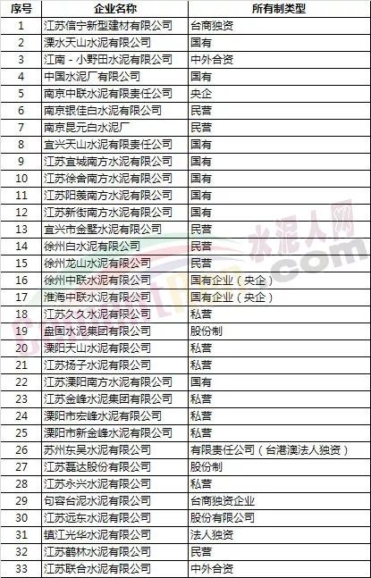 江蘇省熟料生產(chǎn)線企業(yè)名單