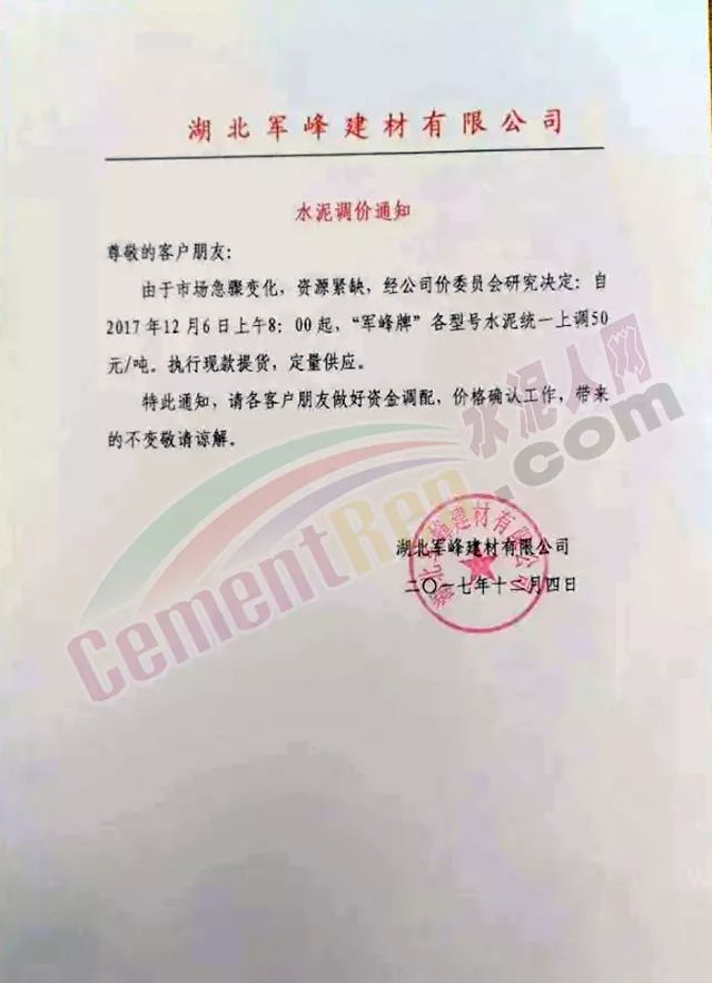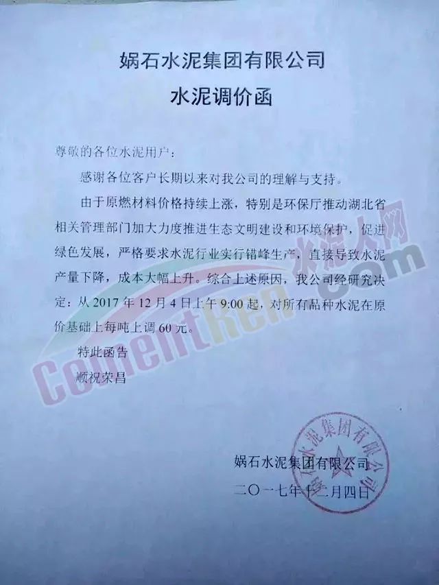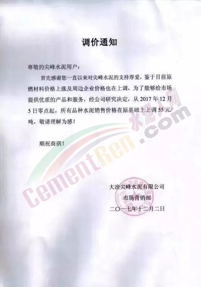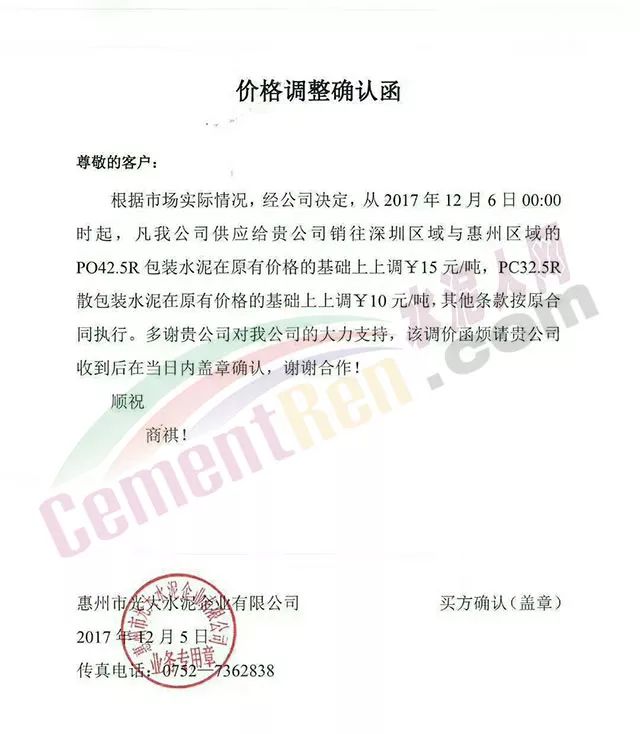 處于南方地區(qū)的華南區(qū)域主導(dǎo)企業(yè)也于昨日發(fā)布了水泥價格小幅上調(diào)的通知: