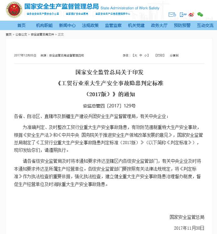 工貿(mào)行業(yè)重大生產(chǎn)安全事故隱患判定標準
