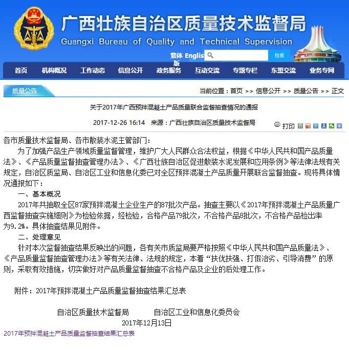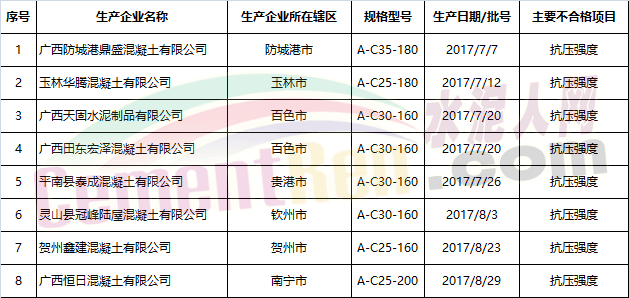 據(jù)水泥人網(wǎng)了解,此前也有部分地區(qū)抽檢出水泥成品的氯離子超標,其不合格原因與原料,燃料的氯離子的含量不無關(guān)系。而近日廣西壯族自治區(qū)質(zhì)量技術(shù)監(jiān)督局公布的《關(guān)于2017年廣西預(yù)拌混凝土產(chǎn)品質(zhì)量聯(lián)合監(jiān)督抽查情況的通報)顯示2017年共抽取全區(qū)87家預(yù)拌混凝土企業(yè)生產(chǎn)的87批次產(chǎn)品。合格產(chǎn)品79批次,不合格產(chǎn)品8批次,不合格產(chǎn)品檢出率為9.2%,不合格項目為抗壓強度。