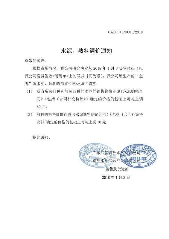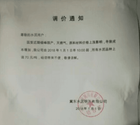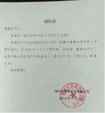 除此之外,據(jù)水泥人網(wǎng)了解,陜西地區(qū)在2017年年末也進(jìn)行了最后一輪漲價,并且因受到錯峰生產(chǎn)、環(huán)保督查等方面的影響,目前陜西部分地區(qū)水泥企業(yè)已無熟料可賣。部分漲價函如下: