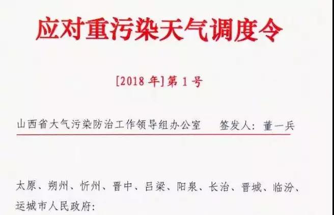 日前,山西省大氣污染防治工作領(lǐng)導(dǎo)組辦公室發(fā)布了今年第1號應(yīng)對重污染天氣調(diào)度令。要求包括太原市在內(nèi)的10個市于今日12時至1月15日24時期間,采取不低于橙色級別的應(yīng)急減排措施。