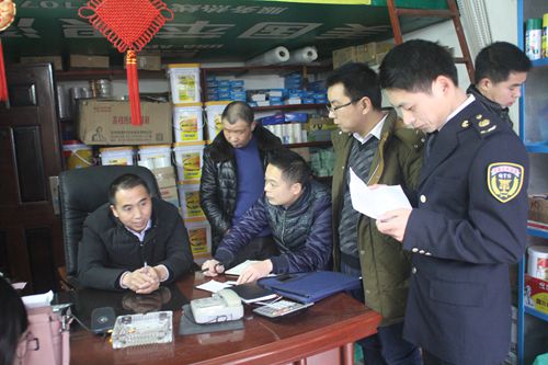 檢查組在巫山縣城區(qū)一建材銷售點(diǎn)了解水泥銷售情況。特約通訊員 陳廷權(quán) 攝