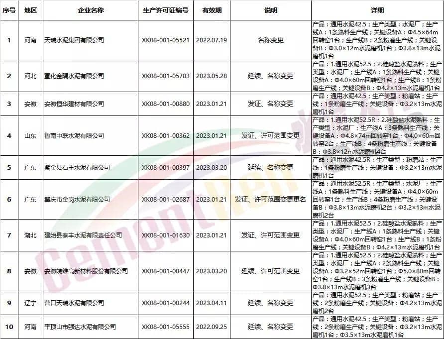 【水泥人網(wǎng)】國家質(zhì)檢總局于本月22日發(fā)放本月第三批生產(chǎn)許可證,本次共發(fā)放25家企業(yè),25個編號生產(chǎn)許可證。其中新發(fā)證書五個編號,涉及名稱及許可范圍變更的共十個編號證書,到期延續(xù)的共八個編號證書,其他或兼并重組的2個編號證書。詳情如下: