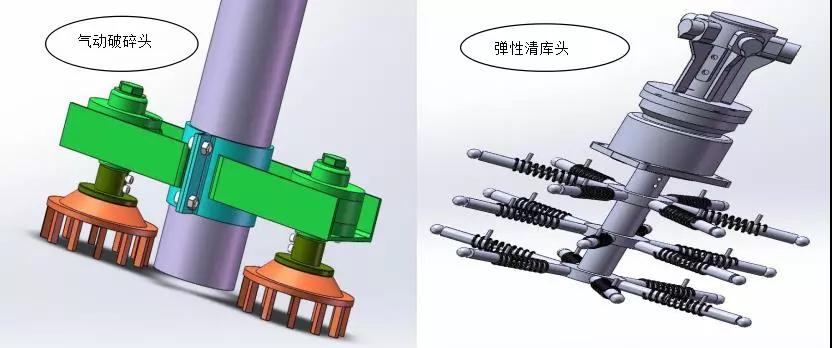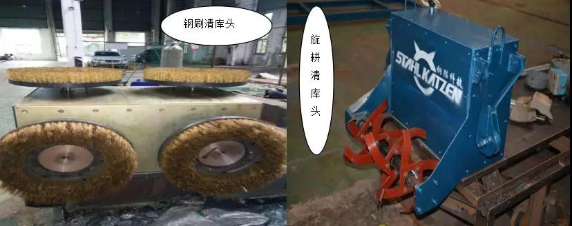4、利用水泥清庫機(jī)(專利產(chǎn)品)對掛壁料進(jìn)行清理,解除庫內(nèi)危險(xiǎn)。