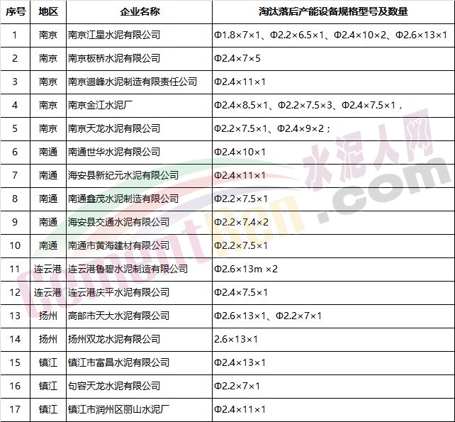 2017年水泥行業(yè)完成落后產(chǎn)能淘汰企業(yè)名單