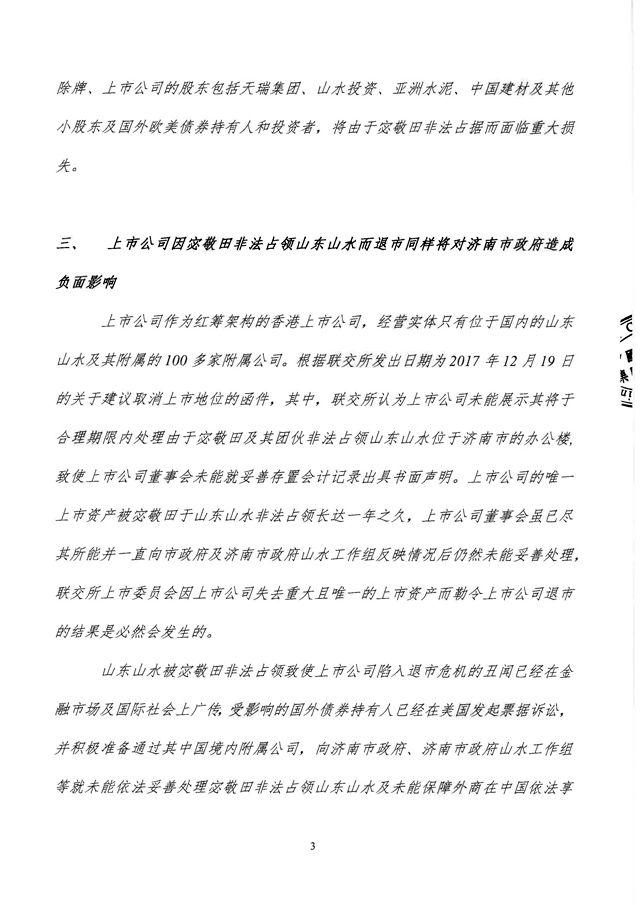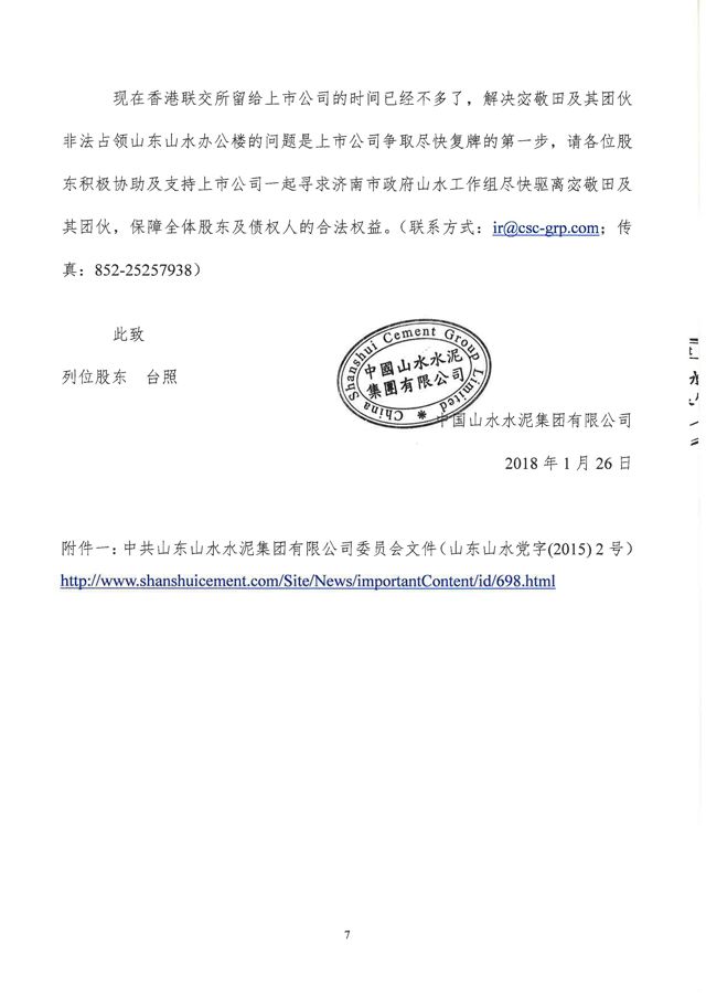 【水泥人網(wǎng)】山水水泥公布,鑒于該公司面臨被建議取消上市地位的迫切風險,該公司與山東山水水泥集團有限公司董事會溝通后現(xiàn)向公司全體股東發(fā)出信函。
