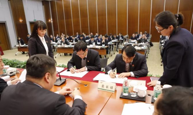 會(huì)上,公司副總經(jīng)理劉素敏宣讀了部分企業(yè)由金隅冀東水泥直接管理的文件精神和2018年績(jī)效管理目標(biāo)責(zé)任書編制說明,公司財(cái)務(wù)總監(jiān)任前進(jìn)宣讀了總部部門2017年度考核兌現(xiàn)意見。公司黨委書記、董事長(zhǎng)姜長(zhǎng)祿與23家企業(yè)及15個(gè)總部部門簽訂2018年度績(jī)效管理目標(biāo)責(zé)任書。朱長(zhǎng)君、王川等6名同志作為企業(yè)及總部部門負(fù)責(zé)人代表先后表態(tài)發(fā)言。