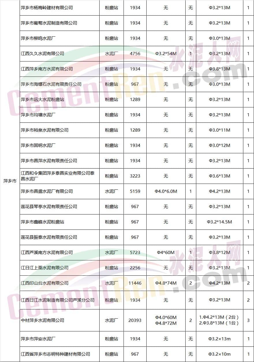 江西省水泥企業(yè)及生產(chǎn)線情況表