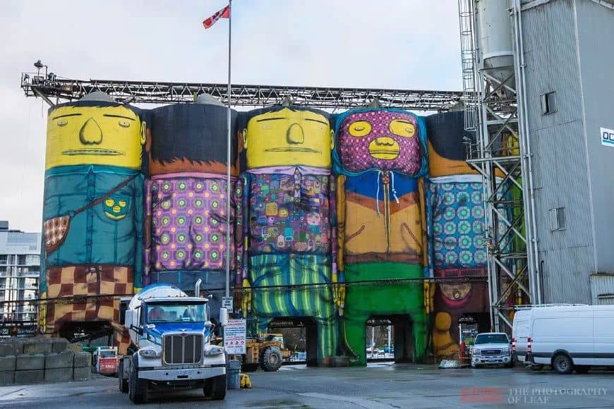 廠區(qū)內(nèi)最吸引眼球的要數(shù)這六座高大的混凝土筒倉。原本單調(diào)無味的灰色建筑,在兩位著名的巴西雙胞胎藝術(shù)家的改造下,變得如此的充滿活力,已成為了格蘭維爾島標(biāo)志性建筑之一。據(jù)說當(dāng)時(shí)花了約80萬人民幣制作而成。