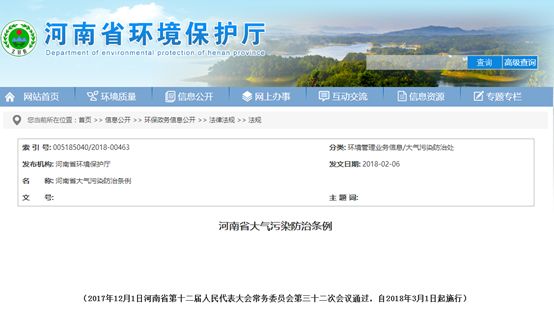 七、河南:實(shí)施大氣污染防治條例