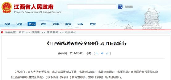 十五、江西:施行《江西省特種設(shè)備安全條例》