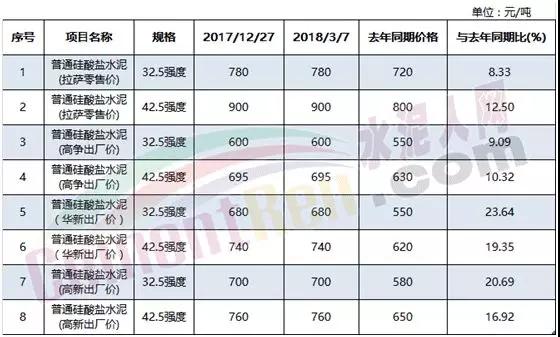 水泥人網(wǎng)信息中心數(shù)據(jù)顯示西藏拉薩區(qū)域自上年未到目前的水泥價格一直穩(wěn)定無變動,其價位仍處于全國最高水平。