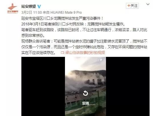 【水泥人網(wǎng)】2018年3月1日筆者接到延安市寶塔區(qū)川口鄉(xiāng)村民反映:龍騰攪拌站疑發(fā)生爆炸。