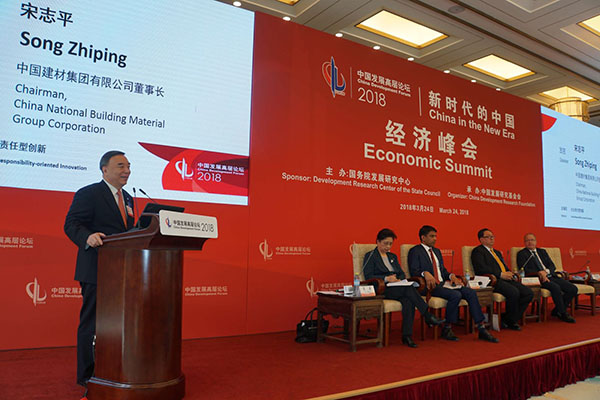 本屆論壇以“新時代的中國”為主題,圍繞高質(zhì)量發(fā)展、供給側(cè)結(jié)構(gòu)性改革與金融政策、高質(zhì)量發(fā)展階段的中國制造、創(chuàng)新與未來等一系列重大議題進(jìn)行探討。中國建材集團(tuán)董事長、黨委書記宋志平應(yīng)邀參加并在經(jīng)濟(jì)峰會“社會責(zé)任型創(chuàng)新”單元作主題發(fā)言,諾華公司首席執(zhí)行官萬思瀚、國家開發(fā)投資集團(tuán)董事長王會生、沃爾沃集團(tuán)總裁兼首席執(zhí)行官馬丁·倫德斯泰特共同參加了討論。