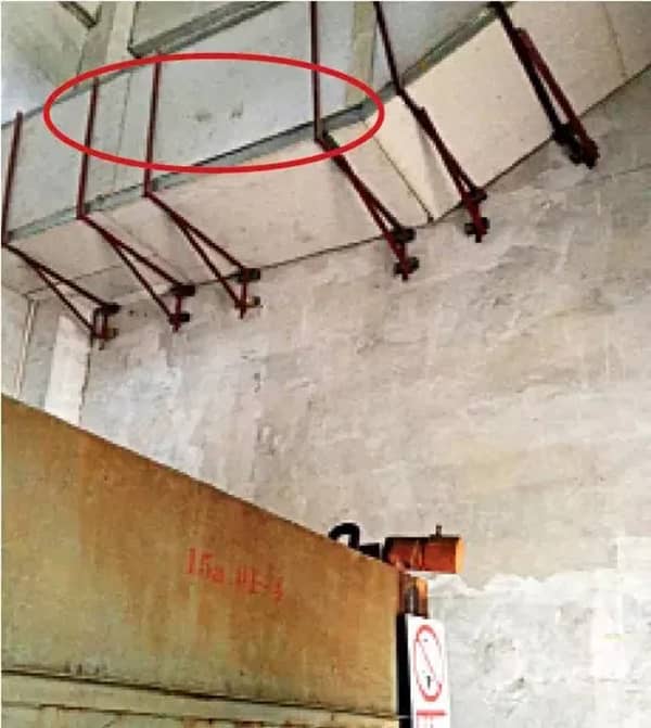8 、水泥工廠筒形儲(chǔ)庫(kù)外壁開(kāi)裂,出現(xiàn)較大裂縫,容易發(fā)生坍塌,造成人員傷害。