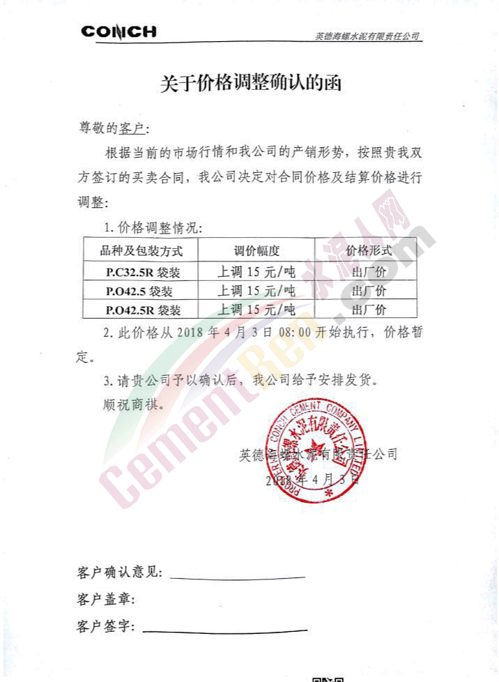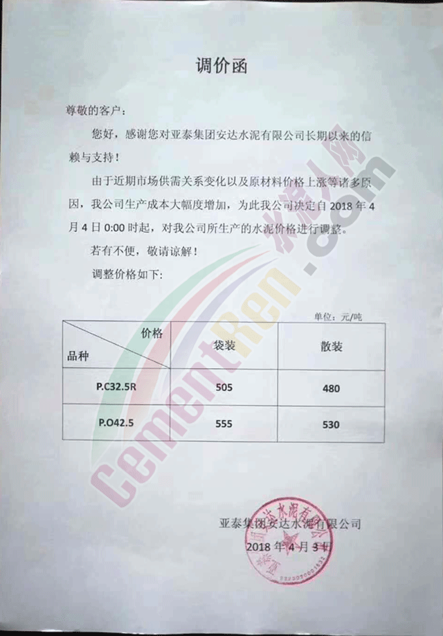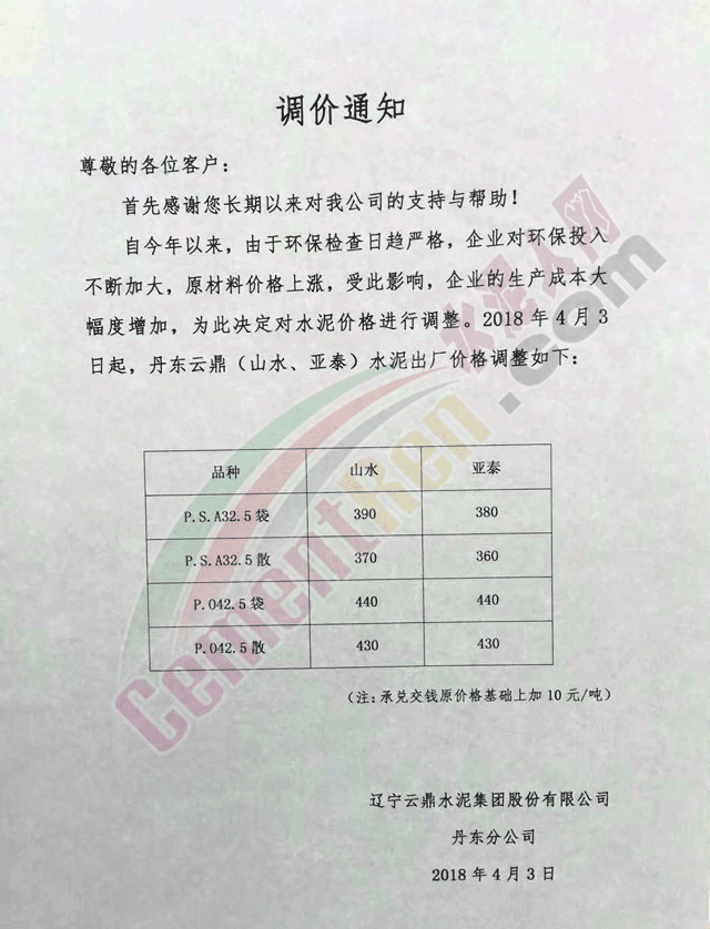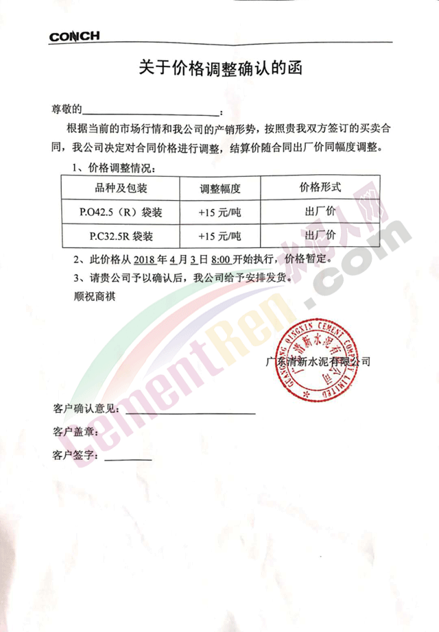 華南地區(qū)水泥企業(yè)提價(jià)通知如下: