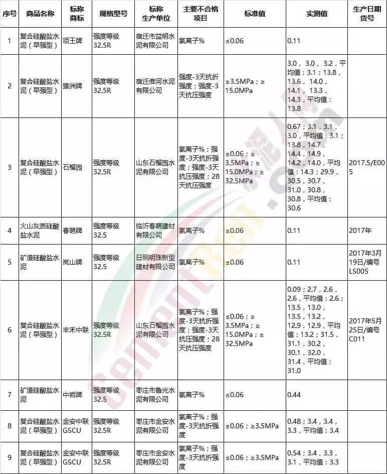 3月28日,江蘇省工商行政管理局官網(wǎng)公布了上年第一階段水泥抽檢結(jié)果,被檢測的42組樣品中,不合格組9個,不合格率為21.4%。不合格項目為強(qiáng)度不夠和氯離子超標(biāo)。