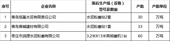 淘汰落后產(chǎn)能名單中包括三家水泥粉磨站企業(yè),合計淘汰水泥產(chǎn)能123萬噸。具體情況如下表: