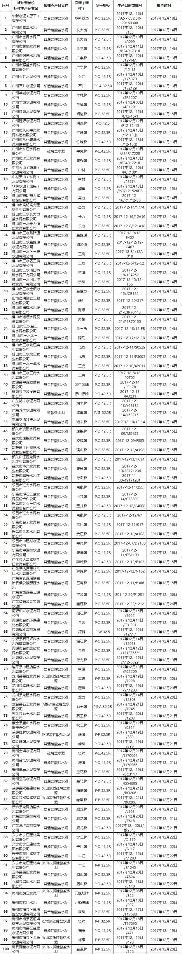 2017 年廣東省水泥產(chǎn)品質(zhì)量執(zhí)法聯(lián)動