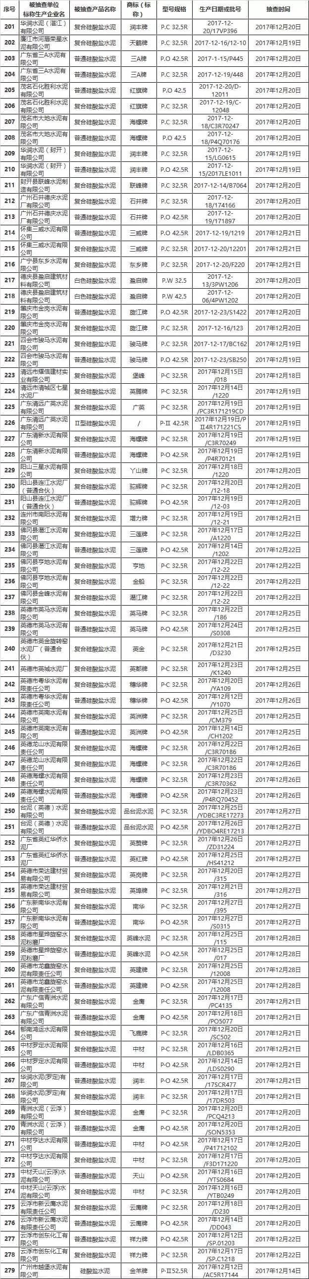 2017年廣東省水泥產(chǎn)品質(zhì)量執(zhí)法聯(lián)動監(jiān)督抽查