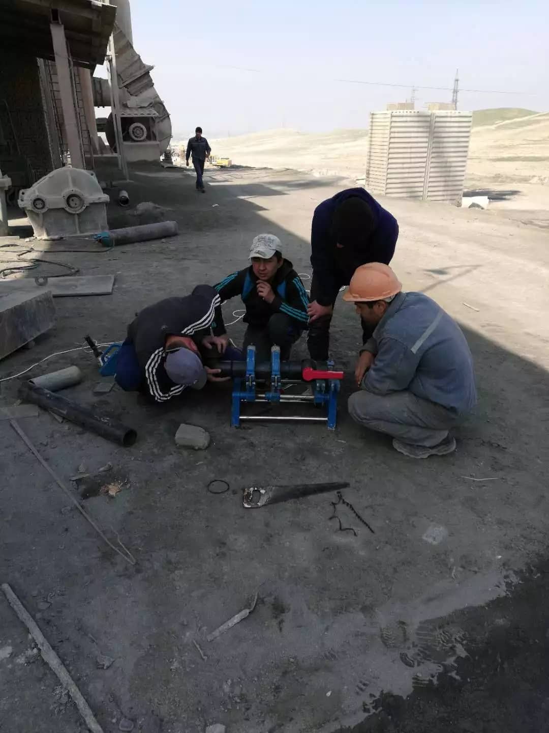 水泥廠里有些工作需要兄弟同心才可完成。