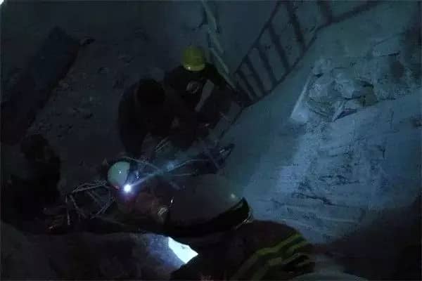 途中,經(jīng)報警人了解,被困者當時正在5層樓高的水泥罐體中進行作業(yè),不慎摔入罐底,情況十分緊急。