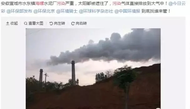 這份猜忌逐漸在當(dāng)?shù)厝丝谥袀鏖_(kāi),宣城海螺也成為眾矢之的。有當(dāng)?shù)鼐用駥⑵淙臻g排放粉塵的圖片視頻發(fā)布到社交媒體上,控訴其污染嚴(yán)重、無(wú)人監(jiān)管。不僅帶來(lái)社會(huì)恐慌,海螺水泥的形象也在“民怨”中受損。