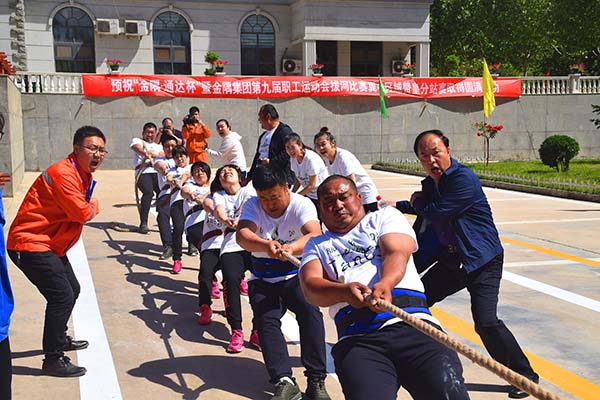 正式比賽前,現(xiàn)場工作人員帶領(lǐng)大家進(jìn)行了拉伸運(yùn)動。當(dāng)比賽的哨聲響起,各公司的隊(duì)員們雙手緊握長繩,口中一齊高呼著“一二、一二”,團(tuán)結(jié)一心,憋足了勁拼命向后拉,各公司啦啦隊(duì)為比賽隊(duì)員吶喊加油,哨子聲、吶喊聲,此起彼伏,飄蕩在贊皇金隅辦公樓廣場上空。經(jīng)過激烈的角逐,最終,鼎鑫——靈壽區(qū)域公司力壓群雄拔得頭籌取得冠軍,易縣——淶水區(qū)域公司榮獲亞軍,贊皇金隅公司榮獲季軍。