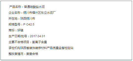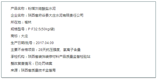 27批次產(chǎn)品停產(chǎn)倒閉取締或已罰款結(jié)束名單中含一例水泥產(chǎn)品,詳情如下: