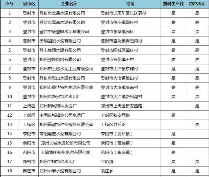 針對于超低排放限值,在上述通知文件附件《河南省2018年工業(yè)企業(yè)綠色升級作戰(zhàn)計劃》中描述為試點熟料水泥超低排放改造,2018年10月底前,鼓勵43家水泥熟料企業(yè)試點開展超低排放改造。