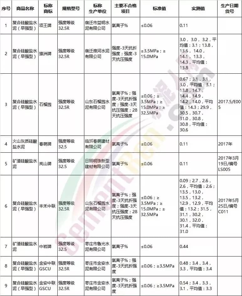 今年以來已經(jīng)有多個省市發(fā)布了水泥抽檢不合格產(chǎn)品名單,詳情如下: