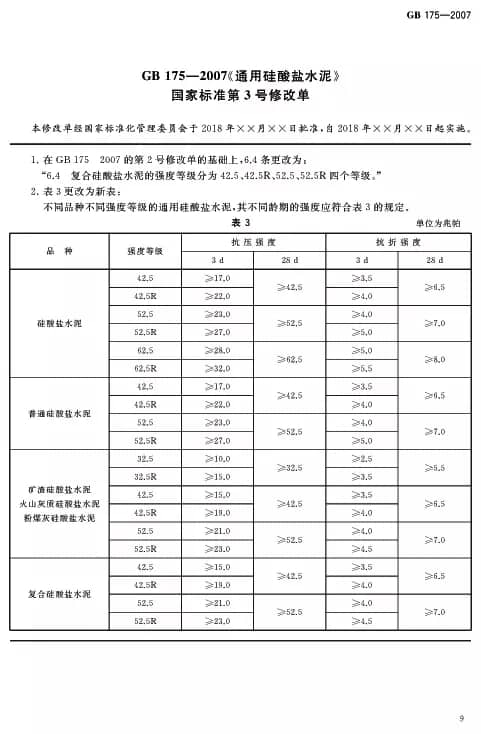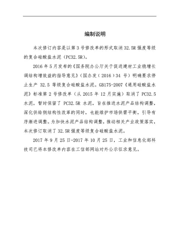 一、《通用硅酸鹽水泥》強(qiáng)制性國(guó)家標(biāo)準(zhǔn)第3號(hào)修改單(報(bào)批稿)