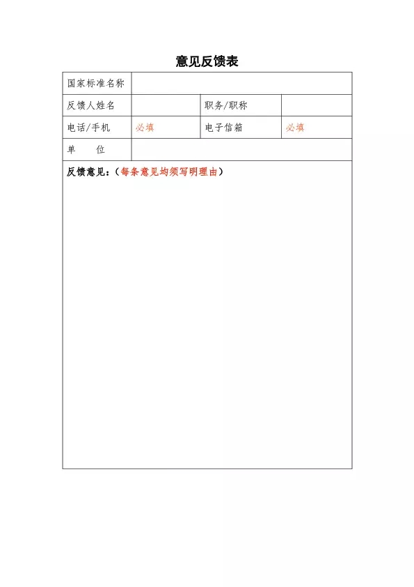 征求意見(jiàn)截止時(shí)間為2018年6月7日。《意見(jiàn)反饋表》可以郵寄、傳真或以電子郵件的形式反饋至我國(guó)家標(biāo)委會(huì),逾期將視為無(wú)意見(jiàn)。