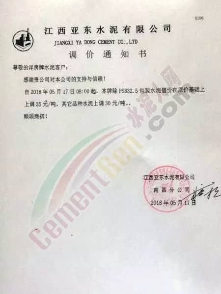 寧夏賽馬水泥關(guān)于調(diào)整水泥銷售價(jià)格的通知稱:因原材料價(jià)格上漲,自2018年5月17日起所有品種規(guī)格水泥價(jià)格上調(diào)30元/噸。其他水泥企業(yè)調(diào)價(jià)通知調(diào)價(jià)原來與此類似。