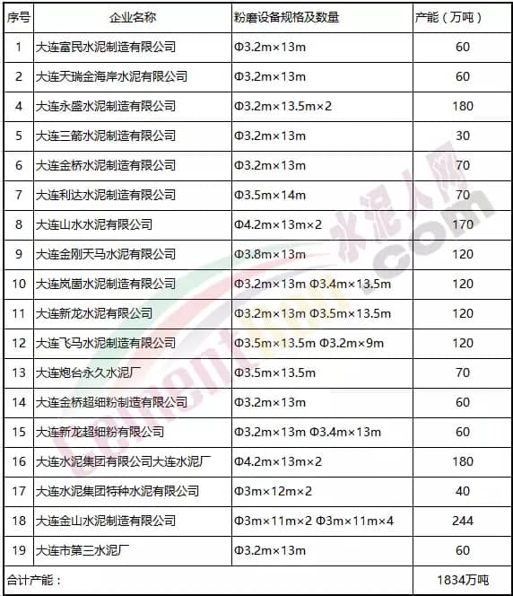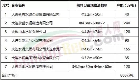 附大連地區(qū)水泥、熟料生產(chǎn)企業(yè)名單