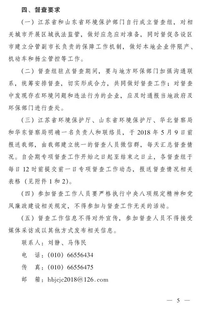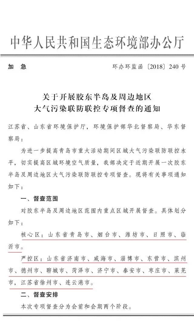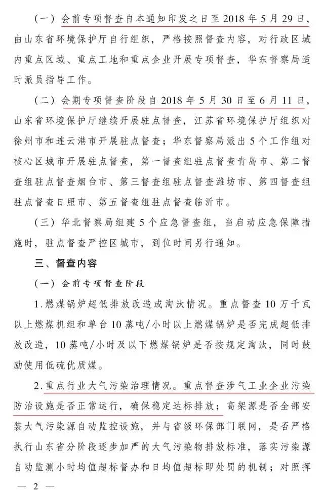 會(huì)期專項(xiàng)督查階段自2018年5月30日至6月11日,山東省環(huán)保廳繼續(xù)開展駐點(diǎn)督查,江蘇省環(huán)保廳組織對(duì)徐州市和連云港市開展駐點(diǎn)督查;華東督查局派出5個(gè)工作組對(duì)核心區(qū)城市開展駐點(diǎn)督查。