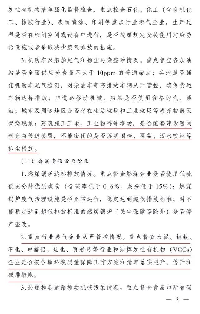 會(huì)期專項(xiàng)督查階段,重點(diǎn)行業(yè)涉氣企業(yè)從嚴(yán)管控,重點(diǎn)督查水泥等行業(yè),是否按各地環(huán)境質(zhì)量保障工作方案和清單落實(shí)限產(chǎn)、停產(chǎn)和減排措施。