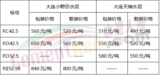 大連小野田水泥和大連天瑞水泥執(zhí)行價(jià)格來(lái)看,同標(biāo)號(hào)水泥差價(jià)在40-70元/噸。