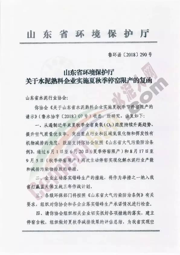收到環(huán)保廳復(fù)函后,山東省水泥行業(yè)協(xié)會即向各熟料企業(yè)發(fā)布了通知文件。
