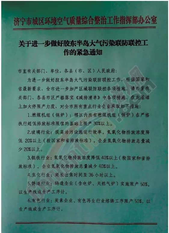 據(jù)水泥人網(wǎng)通訊員消息:6月2日濟(jì)寧市城區(qū)環(huán)境空氣質(zhì)量綜合整治工作指揮部辦公室發(fā)布《關(guān)于進(jìn)一步做好膠東半島大氣污染聯(lián)防聯(lián)控工作的緊急通知》。通知稱:為進(jìn)一步做好膠東半島大氣污染聯(lián)防聯(lián)控工作,根據(jù)國家和省最新要求,全市進(jìn)一步加嚴(yán)區(qū)域聯(lián)防聯(lián)控各項(xiàng)措施。要求濟(jì)寧市直有關(guān)部門、各省市區(qū)嚴(yán)格落實(shí)《減排清單》中各項(xiàng)措施,并在此基礎(chǔ)上加大停限產(chǎn)力度,對(duì)全市所有重點(diǎn)行業(yè)企業(yè)采取措施。