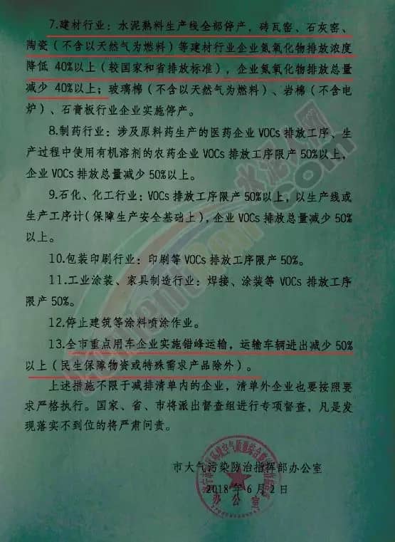 其中針對(duì)水泥建材行業(yè)提出,水泥熟料生產(chǎn)線全部停產(chǎn)。同時(shí)要求全市重點(diǎn)用車企業(yè)實(shí)施錯(cuò)峰運(yùn)輸,運(yùn)輸車國內(nèi)進(jìn)出減少50%以上。