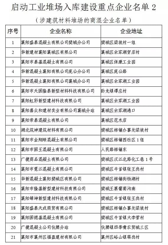 啟動工業(yè)堆場入庫建設(shè)重點企業(yè)名單