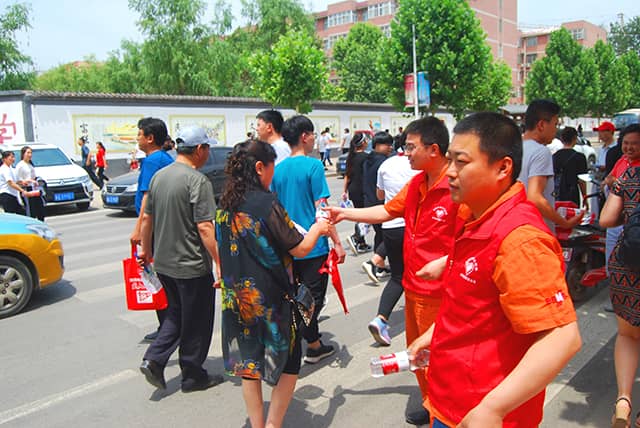 在每場考試之前和結(jié)束之后,贊皇金隅公司的志愿者為考生和家長送水。在考試的中間,志愿者們會邀請考生家長在服務站休息,并送上一瓶水,與家長們聊聊天,緩解一下家長們的緊張情緒。家長們說:“孩子在里面考,家長在外面考,心情更緊張,來你們這里坐一會兒,喝瓶水,再和你們聊聊,感覺放松了不少,真是太感謝贊皇金隅公司為考生和我們家長考慮的這么周到。”一聲聲問候,一面面笑臉,青年志愿者們熱情周到的志愿服務,受到了廣大青年學子和家長的認可和歡迎,大家紛紛為他們的樂于奉獻的精神點贊。
