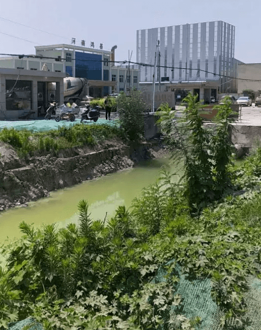 6月22日,本網(wǎng)一行來(lái)到了舉報(bào)中的“河南鴻基混凝土有限公司”門前看到確實(shí)如群眾反映,門口噴淋設(shè)施沖洗車輛后污水直接排入北邊不足2米的公路溝內(nèi),院內(nèi)污水通過(guò)北墻內(nèi)水溝同樣排入公路溝內(nèi),深3米左右溝內(nèi)北段已被水泥廢物填平,南段剛剛清理,黃色經(jīng)水泥浸泡過(guò)的污水清晰可見(jiàn),院內(nèi)看到有生產(chǎn)車間窗戶、水泥罐頂部排放水泥粉塵后留下的痕跡。