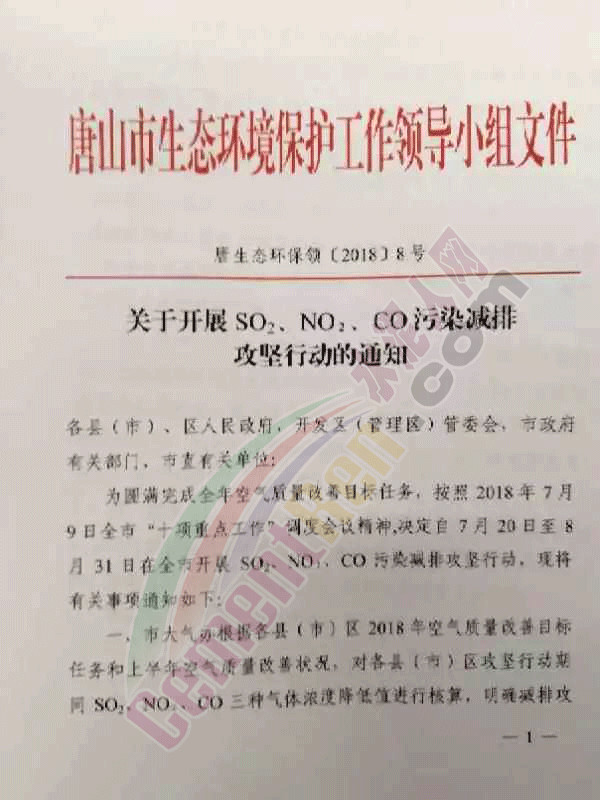 這是繼唐山市豐潤(rùn)區(qū)人民政府發(fā)布《關(guān)于做好近期污染天氣過(guò)程應(yīng)對(duì)工作的緊急通知》,嚴(yán)格要求工業(yè)企業(yè)進(jìn)行減排措施后,唐山市又一項(xiàng)嚴(yán)格的大氣治理文件。
