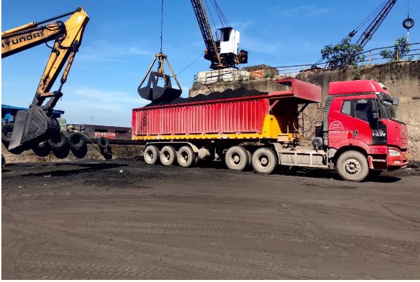 在費龍口村督查時,督查人員發(fā)現(xiàn)金華江沿岸有兩座碼頭,分別用于煤炭、砂石裝卸運輸,大貨車出入頻繁,現(xiàn)場道路布滿灰塵煤渣,車輛駛過揚塵明顯,場地上煤炭、沙石隨意堆放,無任何防塵措施。督查組現(xiàn)場盤問了相關(guān)情況,對存在問題進行記錄,并拍攝了揚塵實況。